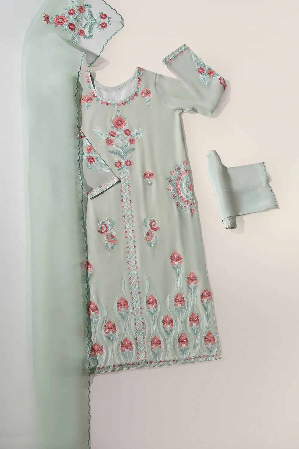 This 3-piece Summer organza outfit comes with an organza dupatta, perfect for the warm weather....